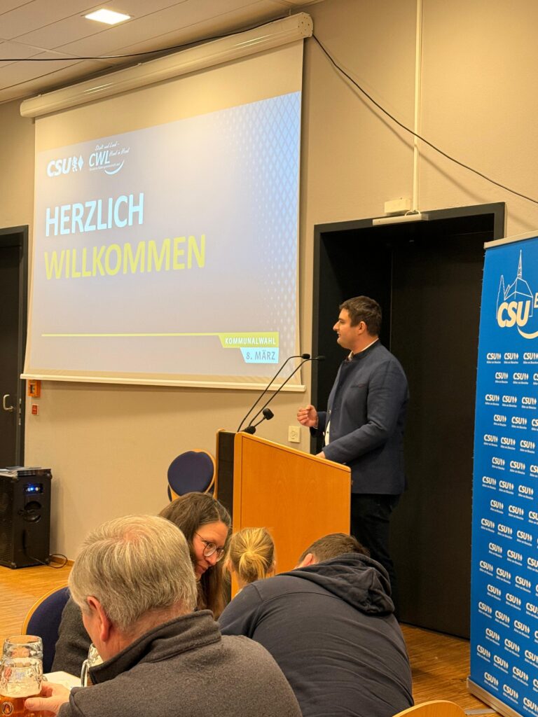 Im Mittelpunkt des Abends stand die Vorstellung der Ergebnisse der CSU-Bürgerumfrage durch Bürgermeisterkandidat Matthias Fütterer. Die vollständigen Ergebnisse werden in Kürze auf der Homepage veröffentlicht und zudem über soziale Medien sowie bei Wahlveranstaltungen vorgestellt. Erstmals wurde an diesem Abend auch das Wahlwerbevideo Fütterers einer breiten Öffentlichkeit präsentiert.